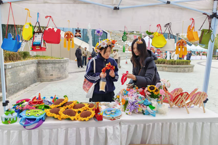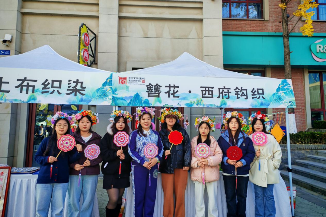 艺术节期间,学院秉持“实践育人才,文化润人心”的理念,组织十余位师生全程参与,从创新设计、现场服务到创意演绎,全方位展现专业素养与创作活力。现场展销的头饰簪花、新款香囊、创意布老虎、创意布包布袋、布艺蛋糕、太阳花手锤、钩织花艺、科普布书、手工玩教具等作品,融合传统针法与现代设计,吸引了众多市民游客驻足咨询。一位非遗传承人称赞道,“这些创新作品让我们看到了老手艺的新可能,年轻人也愿意买单了。”此外,学院师生还协助非遗传承人开展刺绣体验教学,并在社交媒体平台分享艺术节精彩内容,扩大西秦刺绣的知名度与影响力。