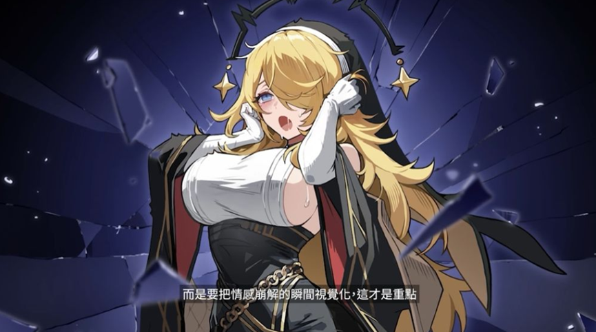 游戏的另一个特色“崩溃”系统。在游戏的黑暗幻想世界观下,每个背负不同故事的角色都有内心深处的精神创伤,在战斗过程中,长时间直面“卡厄思污染”就可能触发这些创伤,导致角色陷入“崩溃”状态,表现出迥异的立绘形象和技能卡牌形象,同时玩家带领的战队亦面临直接减员、生命值上限大幅削减的巨大风险。但一旦玩家完成指定的行动任务后,也可帮助角色从“崩溃”状态中恢复。因此,玩家可以灵活利用“崩溃”机制去筹划战斗节奏,打出更好的效果。