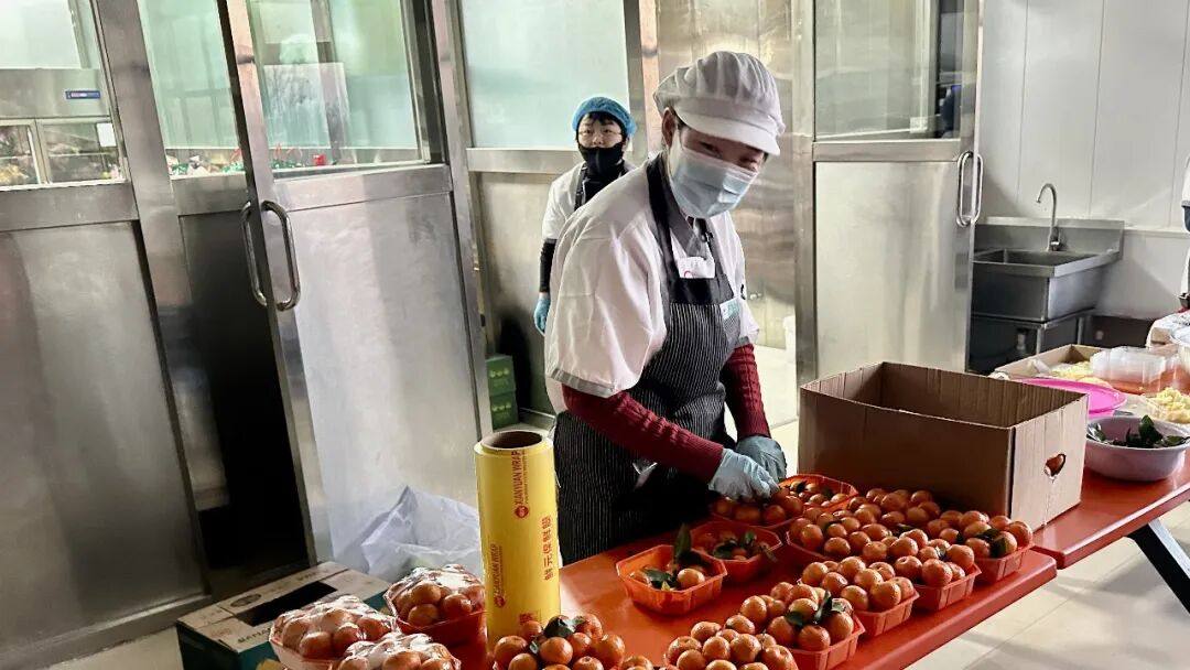 路过水果摊,他补充说:食堂每日供应十余种新鲜水果,水果由学校统一批发采购,经人工细致挑拣后打包,确保每一份水果都是新鲜优质的,并严格管控价格,确保售价低于市场价,让学生享受到质优价廉的服务。