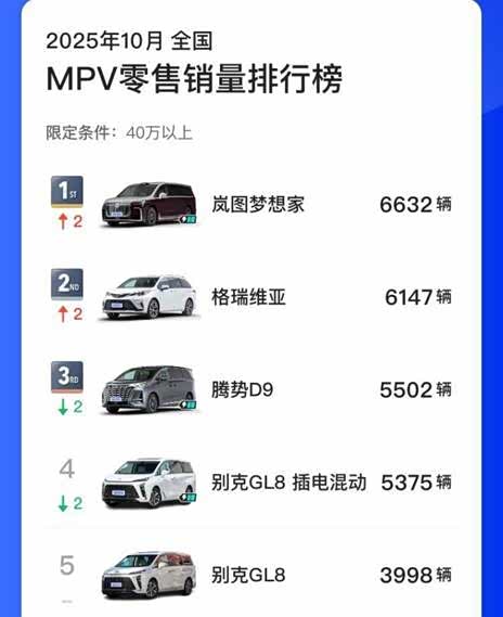 【2025年11月11日 武汉】11月11日,10月汽车销量榜单发布,岚图梦想家以单月6632辆的销量蝉联10月高端MPV销量冠军,自2022年上市至今,岚图梦想家已累计交付超15万辆。
