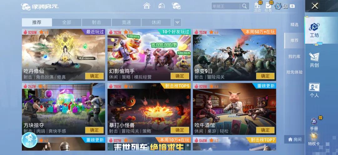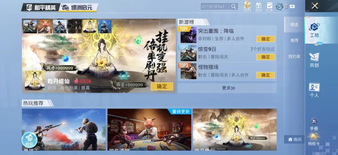 你可能会觉得这数字也没啥大不了的。但《吃丹修仙》有意思的地方在于,它不是手游,也不是小游戏,而是一款《和平精英》绿洲启元UGC平台上的作品。