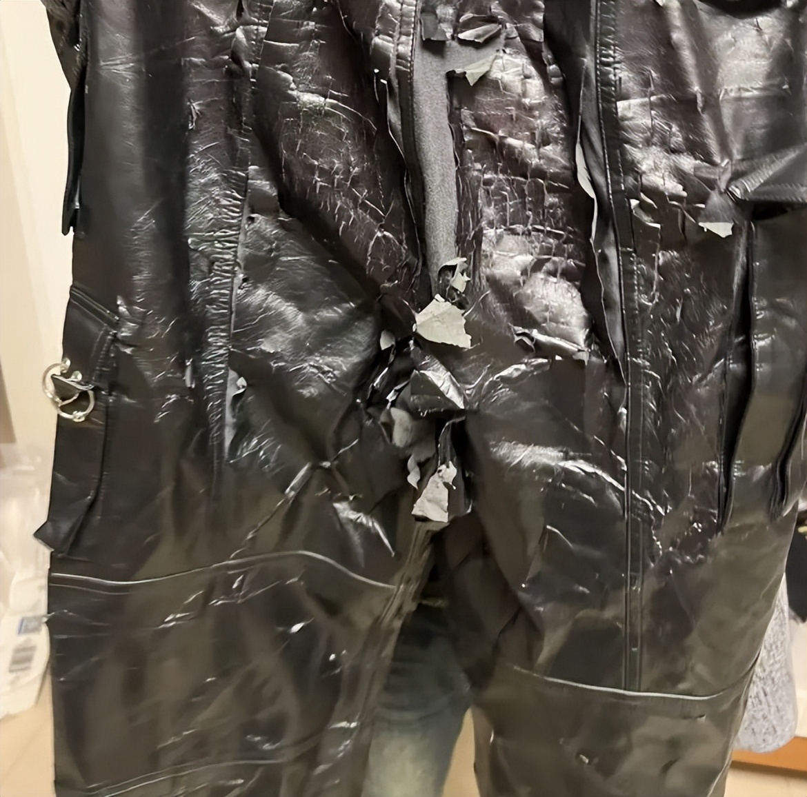 就比如,这种紧身皮裤,我当时在直播间里面看到带货主播穿,确实很好看,但是买回来之后,根本没法穿。