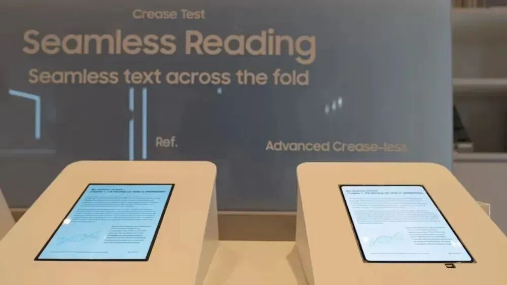 据悉,三星将新款折叠OLED面板与现有OLED面板摆放在一起进行对比。现有面板能看到明显的折痕,而新款面板则几乎看不到折痕。