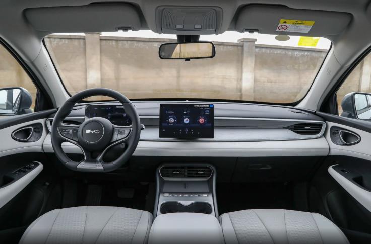 打开车门,比亚迪海豹05DM 128KM豪华型的内饰用料较为基础,车内门板、中控台下方硬塑料较多,敲击时有明显廉价感,不过座椅和方向盘均采用皮质包裹,基础触感不错。整个座舱采用“海悦”环抱式座舱布局,风格现代化,另配备悬浮式液晶仪表和10.1英寸中控屏,科技感尚可。车机支持连续对话,语音可控制导航、音乐等,换挡机构同步升级为电子怀挡,释放了一部分前排空间。
