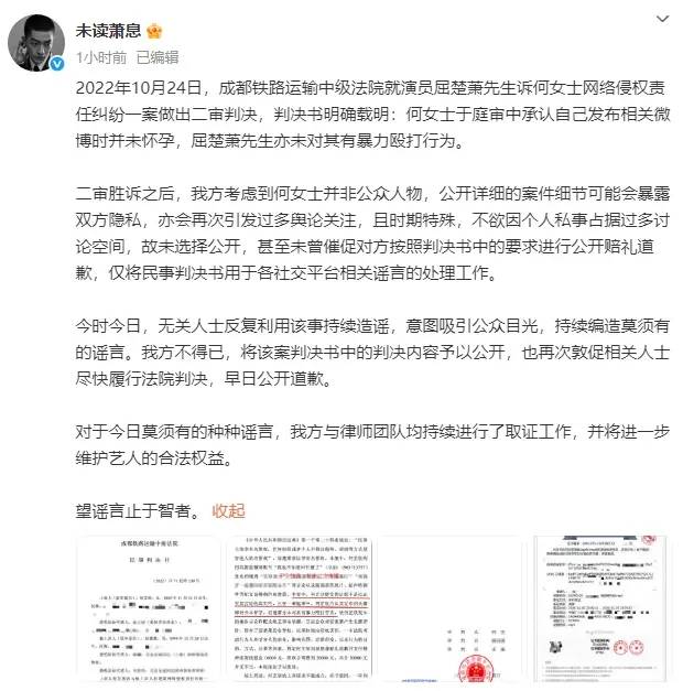 屈楚萧公开胜诉判决书!家暴怀孕均不实,司晓迪造谣翻车