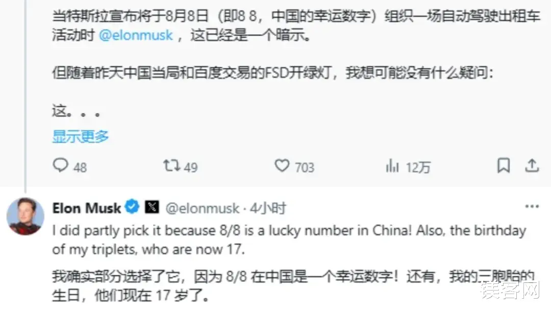 另外,马斯克最初将RoboTaxi发布会定在了8月8日,原因是该数字在中国寓意吉祥。如此极力讨好中国消费者,看上去Model 2真的要来了。