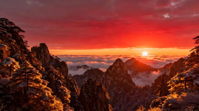 初雪轻吻的黄山,每一寸肌理都诉说着季节的私语。光明顶宛如天地间的瞭望台,当晨雾化作翻涌的银涛,金乌自云霭中喷薄而出,冰晶缀满的雾凇与云浪交相辉映,恍若误入蓬莱仙境。若逢初雪簌簌,漫山古松皆着缟素,松涛裹挟着雪韵,将 “黄山四季皆胜景,冬雪堪称最销魂” 的千古绝唱,谱写成眼前可触可感的瑰丽长卷。