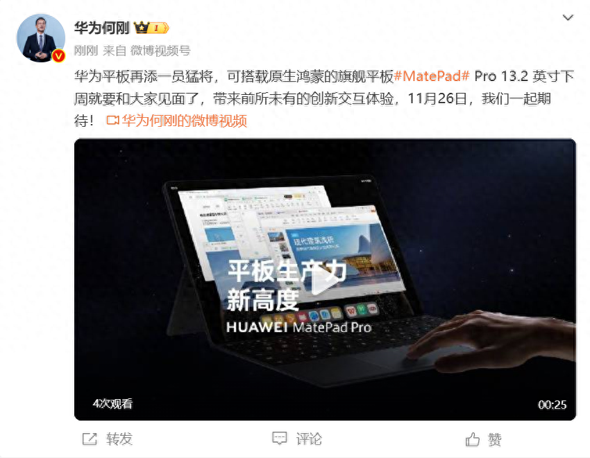 11月21日,华为官宣新旗舰鸿蒙平板即将到来,一条微博让古井无波的平板市场沸腾了起来。据悉,华为新旗舰鸿蒙平板将会在华为Mate品牌盛典上首发亮相,之所以受到如此多人的关注,最关键的一点是其可支持原生鸿蒙系统,用户都在猜测,在原生鸿蒙赋能下的平板电脑,能给大家带来哪些惊喜。