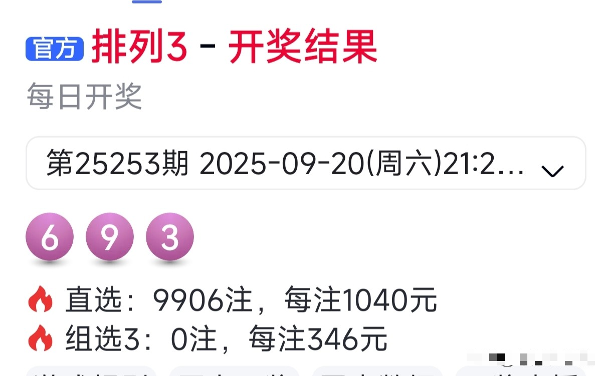 排列三25253期开奖号码为:6 9 3