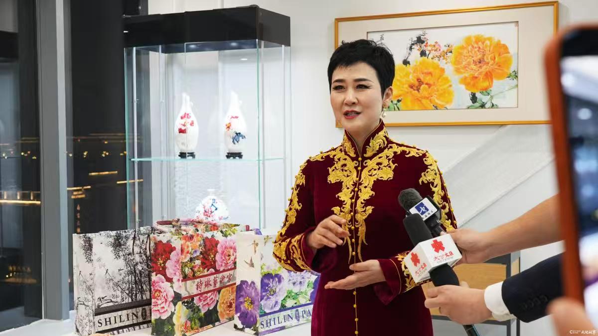 活动现场亮点迭出,一幅巨幅牡丹荷花长卷恢弘登场,李小琳女士亲笔创作的长卷册页静静陈列,笔墨之间满含浓郁的文化温度。场馆设计匠心独具,将美学空间与生活场景巧妙融合,让诗意在日常细节中自然流淌,鲜明传递出“以文化为桥、以艺术为媒,推动传统在时代中焕新,让梦想在传承中绽放”的核心理念。这场文化盛会不仅是艺术与文化交融的视觉盛宴,更饱含对民族复兴的深情礼赞。