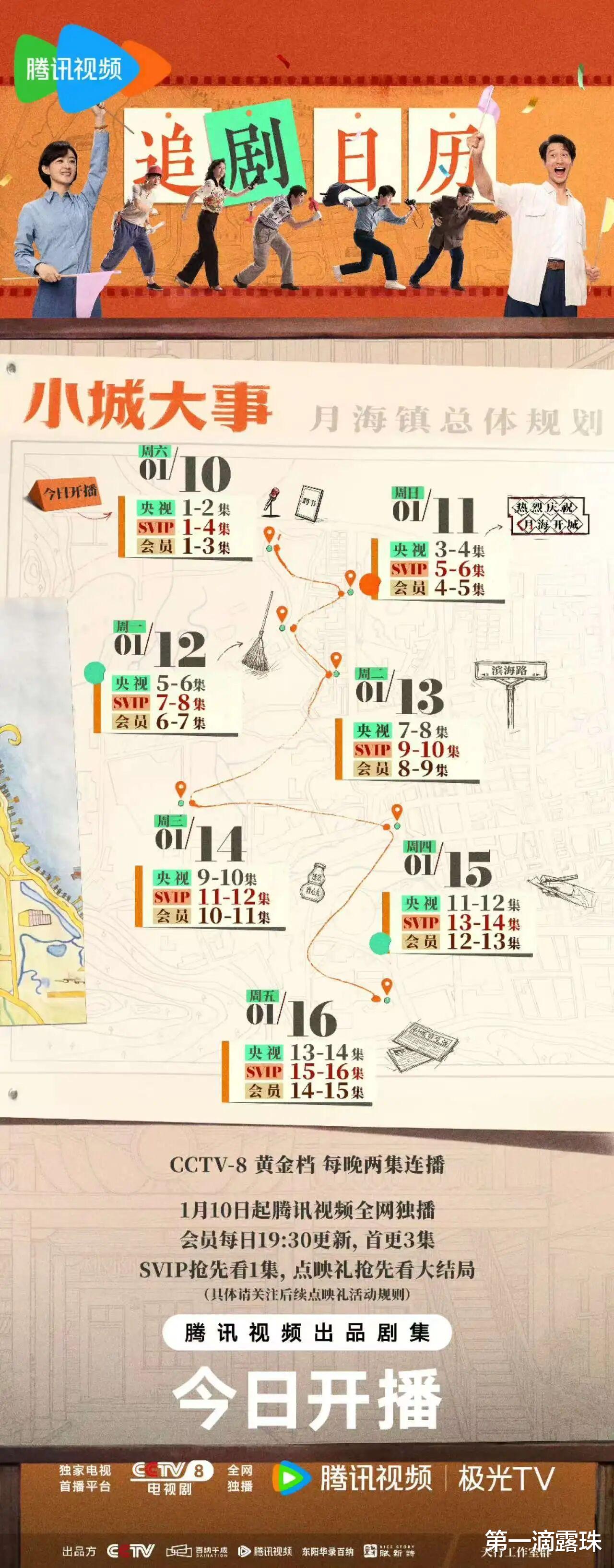 《小城大事》今晚19:30起,CCTV-8开播,连播两集,腾讯视频全网独播,会员首更3集,超级会员抢先看1集。