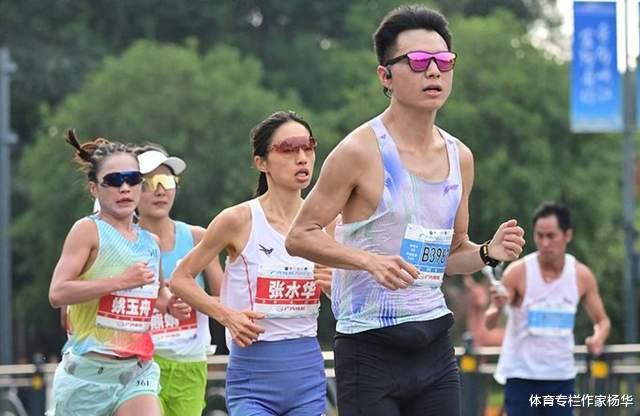 女子马拉松有两个世界纪录,一个是2小时09分56,一个是2小时15分50,差了6分钟,因为前者是有男选手参赛的,可以有男兔子带着跑;后者是纯女子比赛,没有男运动员负责破风。仔细看张水华比赛,她是有专业跑团呵护的,有男选手与其共同作战。