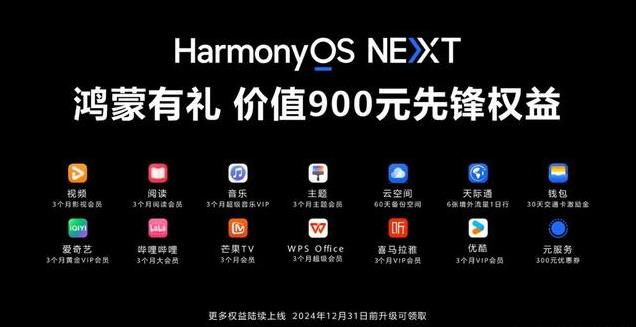 除了这些超贴心、超实用的功能外,华为还准备了一份满满诚意的礼物。“鸿蒙有礼”先锋权益,总价值近千元,只要在2024年12月31日前参与升级,就能解锁专属福利。赶紧升级原生鸿蒙吧!