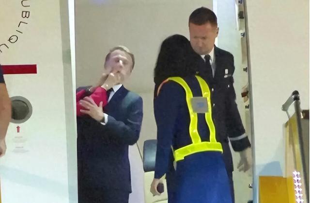 当机舱门开启时,摄影机拍到布丽吉特赏了马克龙一个耳光。随后马克龙走出舱门,布丽吉特独自下机,并未挽夫之手。