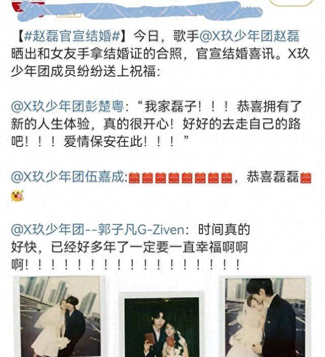 X玖少年团喜事连连:赵磊与幸福的承诺在华语乐坛,X玖少年团一直是一支备受关注的团体。他们以青春洋溢的形象与出色的才华赢得