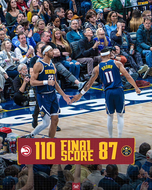 在交易了球队核心特雷杨之后,老鹰今天在客场以110-87大胜残阵掘金,取得两连胜,也终结了掘金的两连胜。老鹰战绩来到19胜21负,继续排在东部第九。而掘金战绩变成25胜13负,被森林狼追平,暂时依旧排在西部第三。