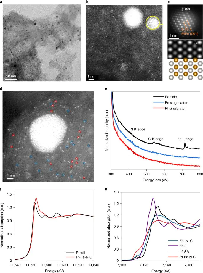 借助理论计算程序(如FEFF或FDMNES),研究者可以拟合出单原子与周围原子的配位构型,如M–N4M–O4M–S6通过这种分析,可以直接判定金属原子是否以孤立形式存在,是否形成金属团簇或氧化物物种。EXAFS图4:单原子位点:、FT-EXAFS与WT-EXAFS综合表征。:10.1038/s41467-019-12362-8