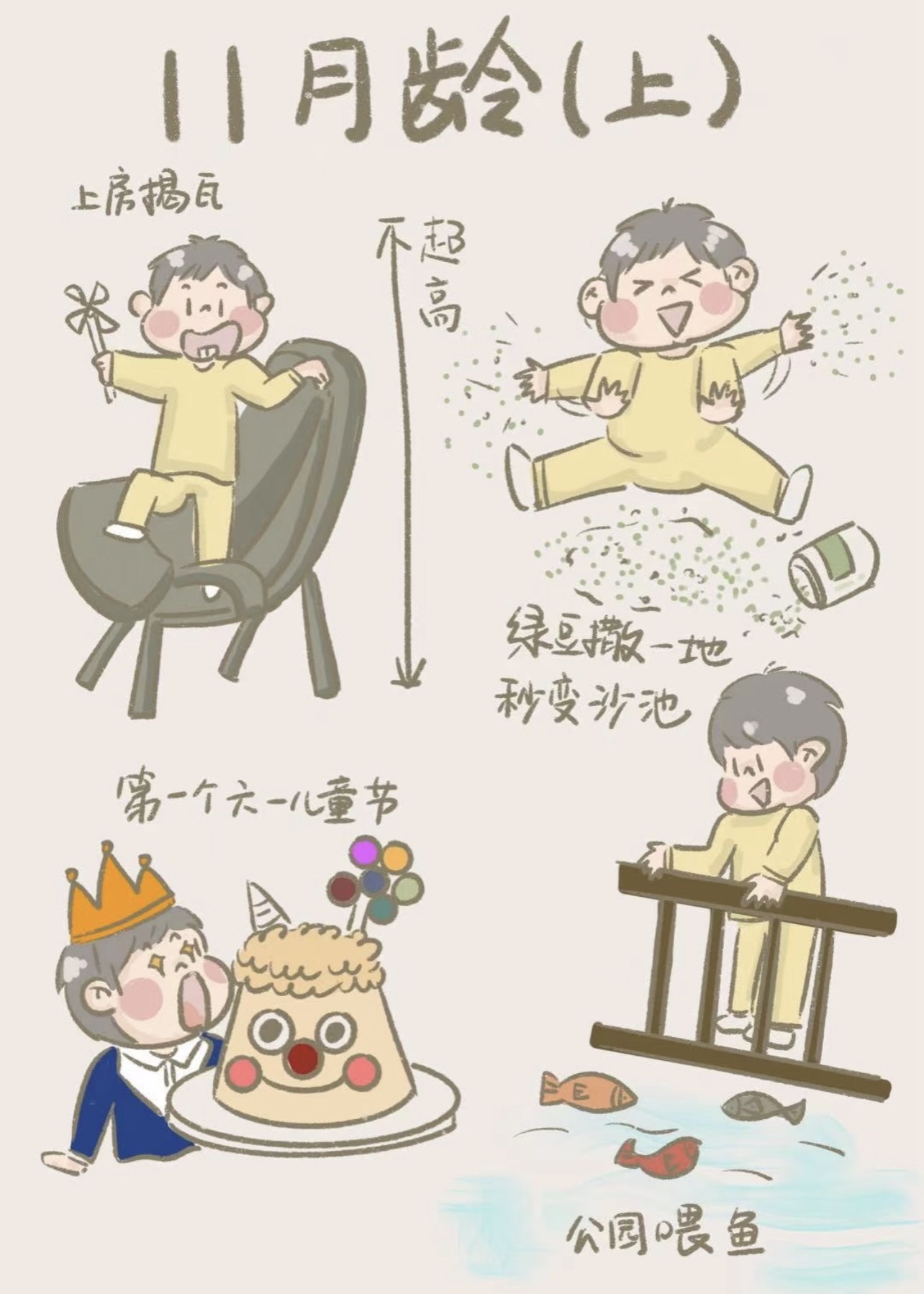 8月龄到1周岁的宝宝就像茁壮成长的小树苗,会自己扶走、会挥手再见、会拍手欢迎、会模仿打电话,最重要的是——听到“妈妈”时,回头冲你笑。