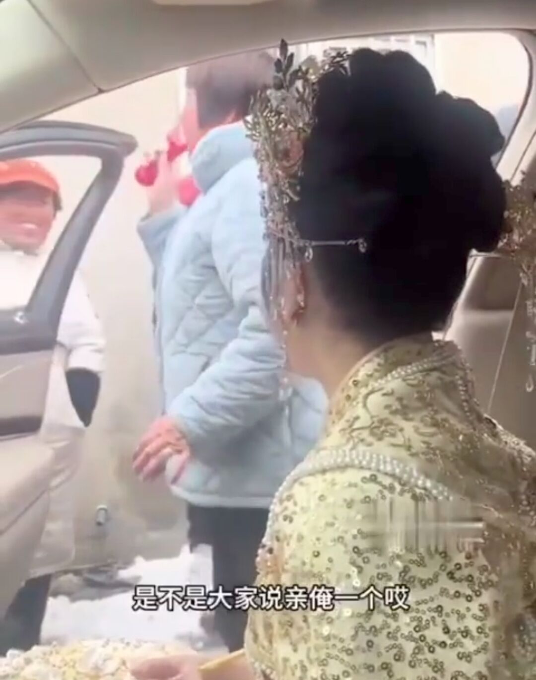 大妈说,根据她们这里的习俗,开婚车的司机,必须要亲新娘一口,不然的话新郎官没法下轿。