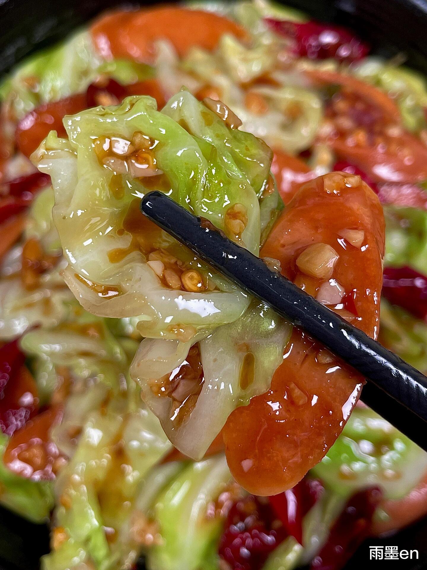 其实这道菜的弹性特别大,完全可以“随心所欲”。比如我爱吃软一点的包菜,就会多炒30秒;室友喜欢口感丰富,就会加一把提前泡软的粉丝,吸满酱汁超入味;要是冰箱里有胡萝卜,切几片放进去,颜色更鲜艳,营养也更均衡。