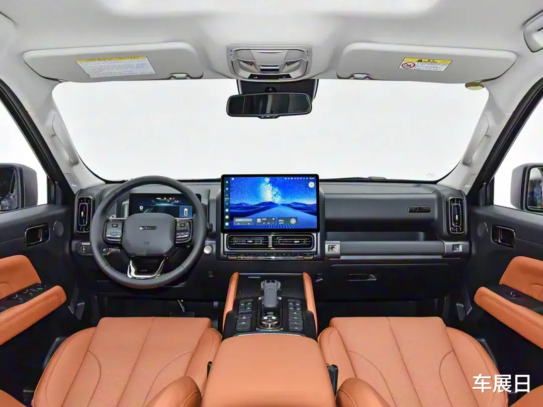 动力方面,搭载2.4T柴油发动机,最大功率137kW,峰值扭矩490牛·米,标配硅油风扇,配备131L原厂双油箱,续航可达1400km,匹配9速自动变速箱,还拥有前后桥电控限滑差速锁、博格华纳TOD适时四驱系统以及9种驾驶模式(新增岩石模式和专家模式),并具备2.5吨拖车资质。