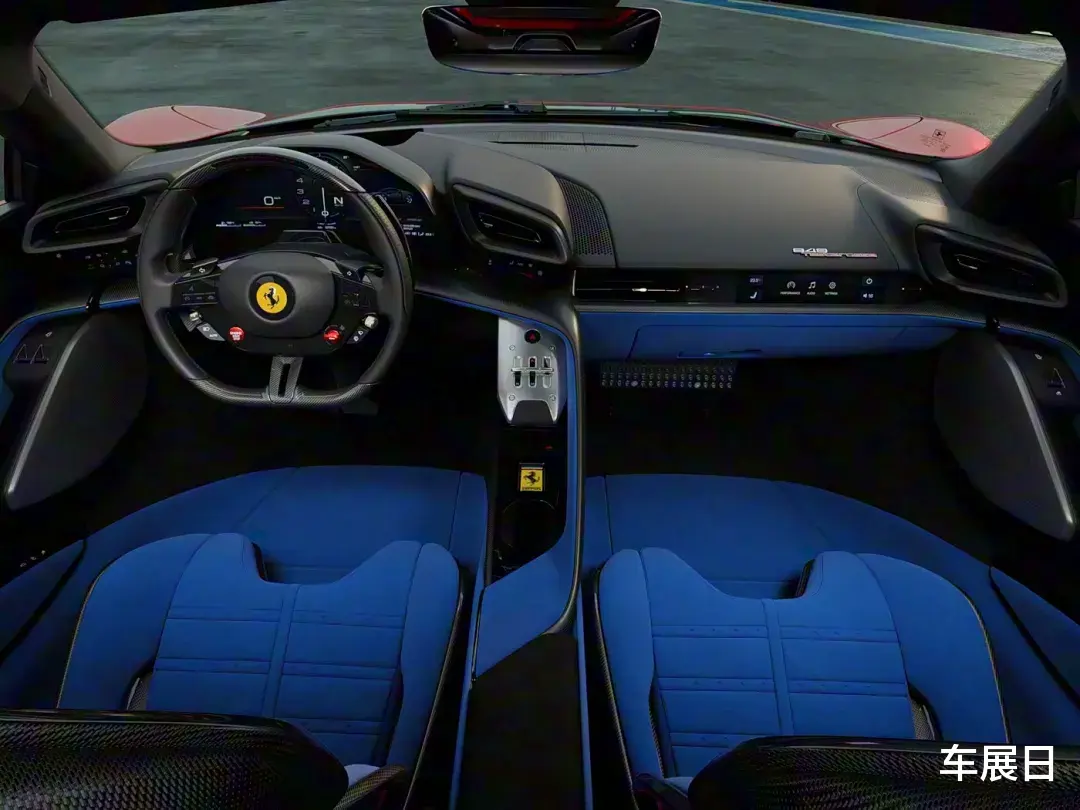 其搭载4.0T V8双涡轮增压发动机 + 三电机插混系统,综合功率1050马力,发动机最大输出功率830马力,电动机额外提供220马力,配备7.45 kWh锂离子电池,纯电续航25公里,重量功率比较SF90 Stradale与SF90 Spider提升近10%,下压力方面也有显著提升。