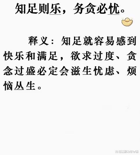 常言道:知足则乐,务贪必忧这句话讲的就是“知足常乐”的道理。人懂得知足,日子就开心;要是贪心不足,烦恼肯定多。好比吃饭,