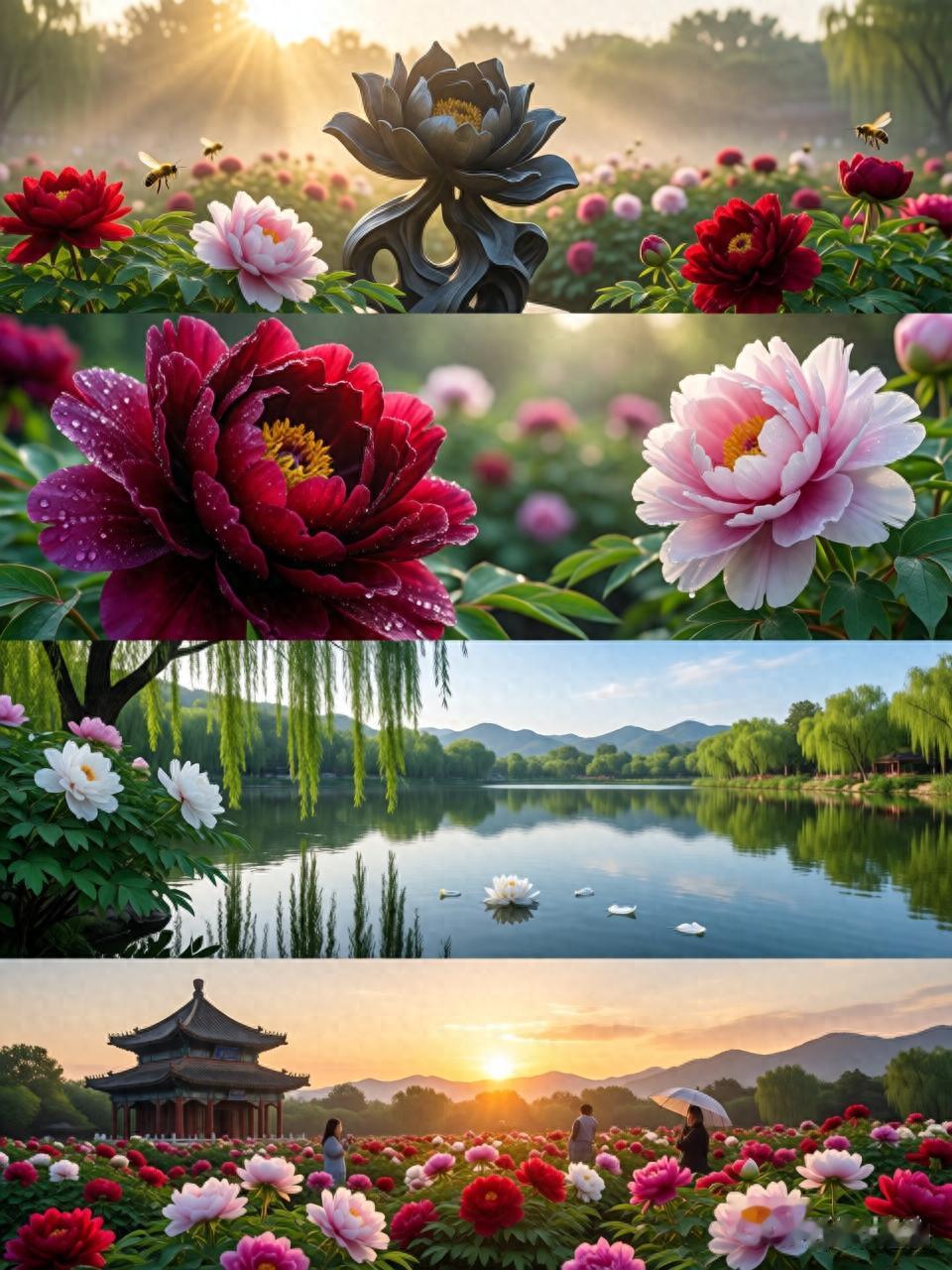 - 寓意:象征牡丹园的庄严与生机,开启一天的赏花之旅。