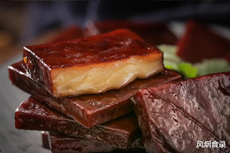 形态方正密实,黑中透亮,咬一口外韧里嫩,卤香浓郁回甘,五香、麻辣、烧烤等数十味挑花眼。