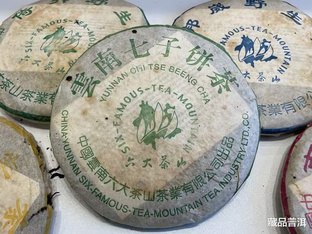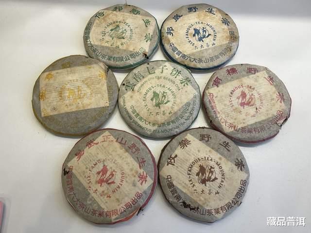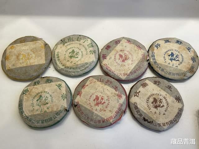 2002年六大茶山野生茶纪念饼,一共有班章、南糯、邦崴、倚邦、易武、攸乐六款,加上一款同年份生产的绿版“云南七子饼茶”,一共有7款茶。