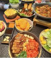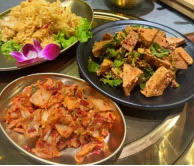 二、Aseyo阿塞哟碳烤焦香黑猪五花肉,烤得滋滋冒油,用生菜包着吃,一点都不腻,吃得根本停不下来!还有咖喱鸡块蛋包饭,鸡蛋嫩滑,咖喱浓郁鸡肉软烂~土豆饼和炸猪排也都是家常的味道爱了爱了