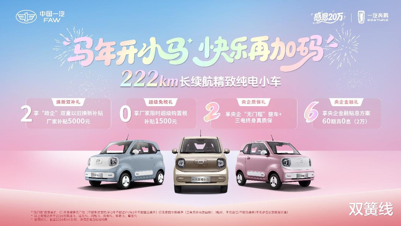 值此双喜临门时刻,一汽奔腾小马于1月16日新春再上新,正式推出全新“摩登马”车型。该车型以“西西里假日”风格为灵感,为都市纯电出行注入复古摩登新风尚,精准回应当代精致宝妈与时尚女孩从“实用出行”到“悦己出行”的消费升级需求。与此同时,“马年开小马 快乐再加码”新年欢乐购活动重磅上线,四重“真”保障政策来袭,以央企担当兑现用户信赖,让精致出行触手可及。