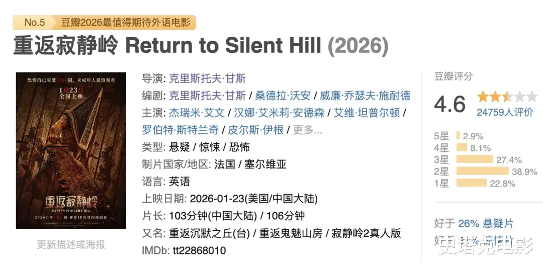 恐怖片热度很高,营销很猛,但口碑却相当拉垮,4.6分的评分耶稣也救不了啊。