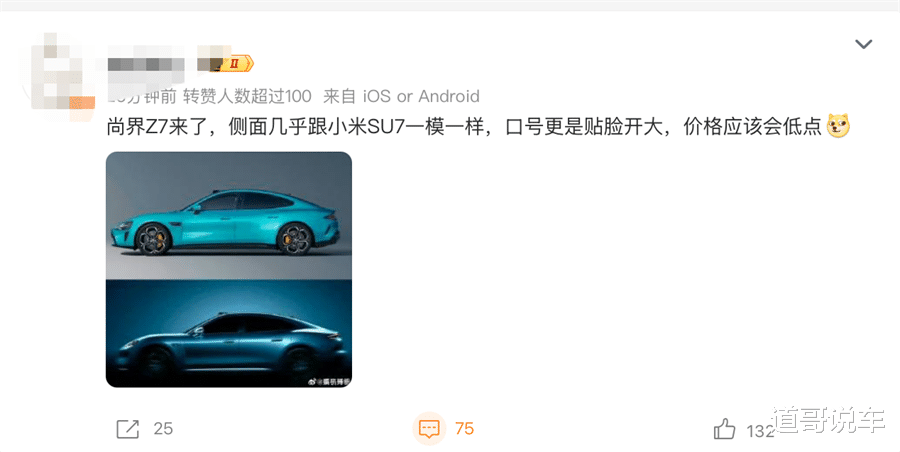 “通过调整预告图图片的曝光度,我们发现尚界Z7的侧面酷似保时捷纯电动车Taycan”。“酷似保时捷纯电动车Taycan”是什么意思?会在舆论场上发酵到什么程度?可能关注过小米SU7以及近年来国内汽车设计争议的朋友们会有所了解。