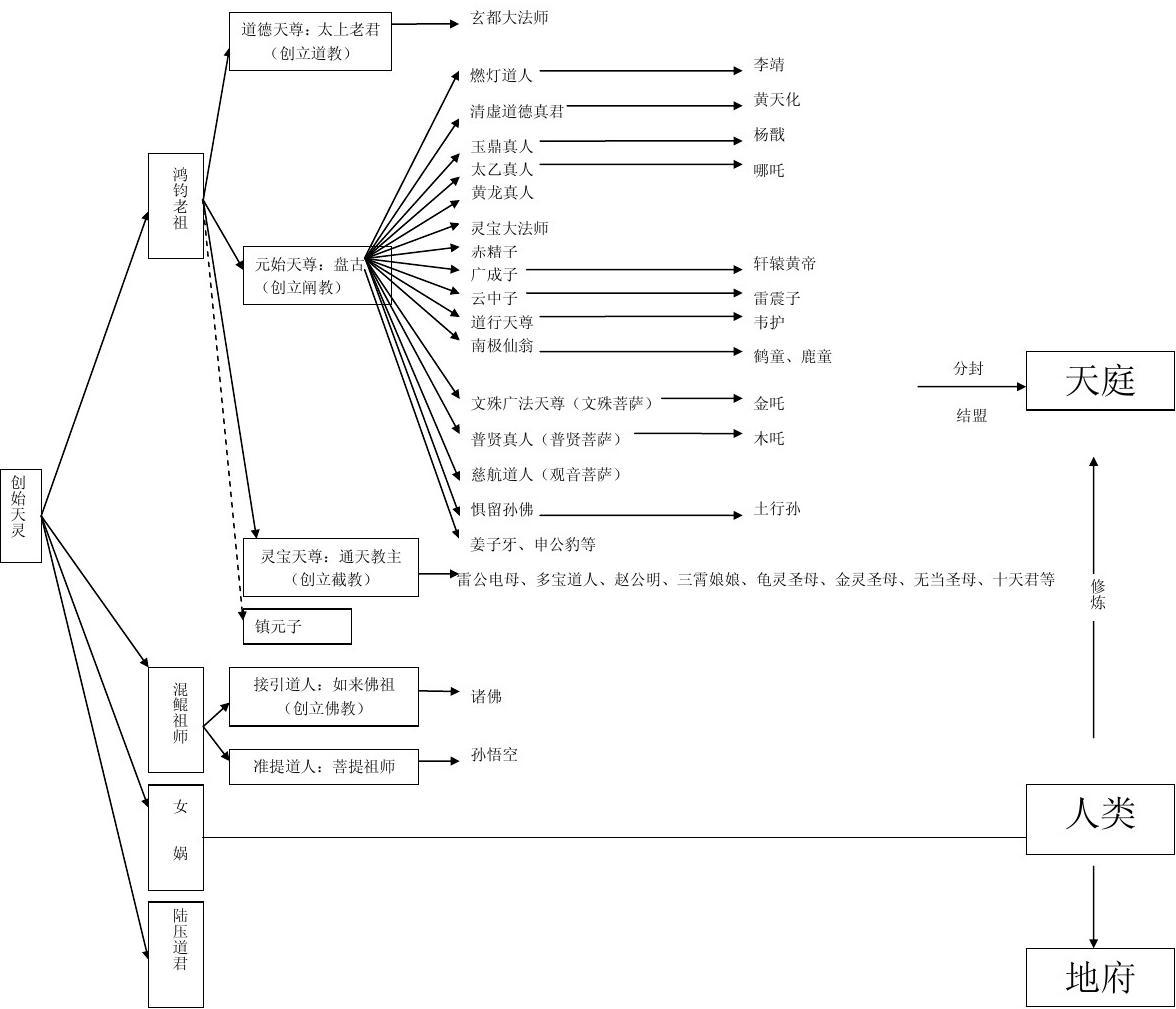 民间神话体系主要依托于民间流传和文学作品流通,依托于前三大神话体系发展而来,没有一个明确的体系,主打天马行空。比如《西游记》里的头号名师菩提老祖,他精通儒释道精微万全法,在西游里佛道皆修,被称为混元大罗金仙。菩提老祖往下还有一个大能叫镇元子,他和牛魔王战力三七开,镇元子三拳牛魔王,孙悟空根本斗不过他,因为镇元子是地仙之祖,地仙以下无敌,地仙以上一换一。他的存在究竟是虚构的还是有体系记载的众说纷纭。