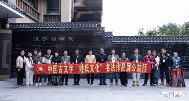 活动首日,考察团抵达中国古文字博物馆成都馆。馆长谭文贵致辞后,唐健文宣布“中国古文字姓氏文化书法展公益行成都站”启动,全体嘉宾手持姓氏书法作品合影,齐声喊出“触摸文字温度,寻根姓氏启缘”的口号,现场气氛庄重热烈。