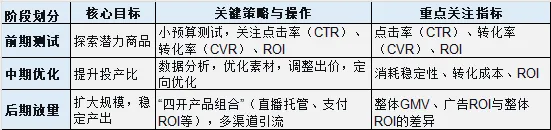 数据驱动决策:定期分析计划报告,复制优秀计划的定向、素材等设置。 “四开产品组合”(直播托管、支付ROI、长周期转化、智能优惠券)能有效提升跑量能力和整体ROI。