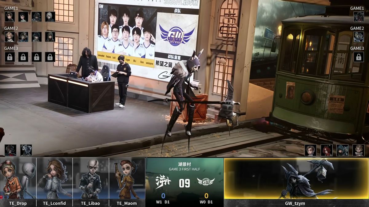 TE的求生者选择了机械师、“心理学家”、“逃脱大师”、空军(BAN歌剧演员、宿伞之魂);GW的监管者tzym选择了守夜人。(BAN小说家、哭泣小丑、先知、杂技演员)