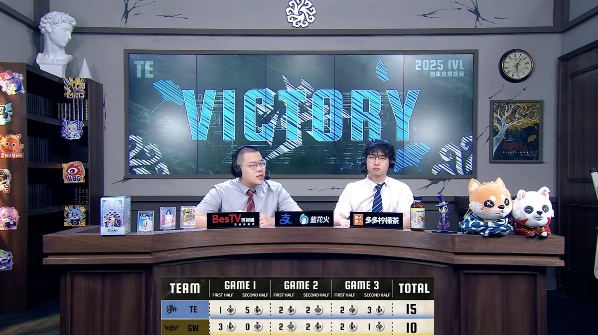最终,TE以2胜1平0负(15:10)的比分击败GW,获得本场比赛的胜利。