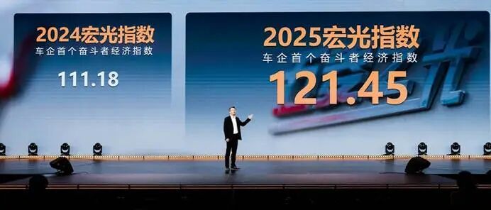 大会上首次发布的“宏光指数”更是从一个独特视角揭示了中国经济的微观活力。2025年该指数达到121.45分,较去年提升9.23%。指数背后是奋斗者“越拼越勇”的新姿态、“年轻高知”的新活力和向“新基建发达地区”聚集的新选择,清晰地印证着:当无数奋斗者选择向上攀登,中国经济的毛细血管便始终充满生机。