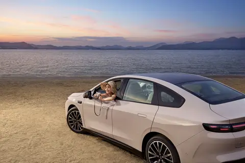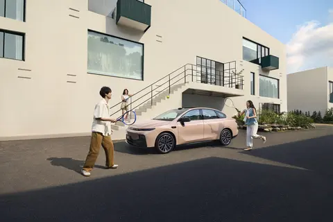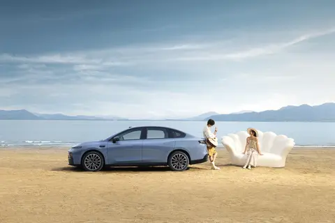 在如今看颜值的时代,车的外观也是一张对外的名片。零跑B01采用"天梭流体车身"设计,整体线条流畅舒展,从车头到车尾一气呵成,不仅颜值出众,更实现了0.197Cd的超低风阻系数——这个数据甚至超越了保时捷Taycan、特斯拉Model S等豪华车型,为长续航打下了坚实基础。前脸的"引力场"封闭式设计搭配贯穿式三段式日间行车灯,夜间点亮后科技感十足,辨识度拉满;两侧远近光一体式大灯与车身融合自然,照明效果清晰,满足不同路况需求。