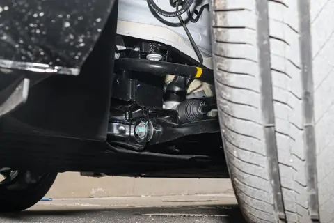 车好看还要看底盘,这辆B01 550激光雷达版底盘用前麦弗逊+后多连杆独立悬架,调校偏舒适,过减速带或坑洼路面能有效过滤颠簸,车内不松散。邻居告诉我说,"底盘挺整的,不松散,有点德系车的感觉。"转弯半径仅5.25米,窄路掉头一把过,特别适合城市驾驶。转向手感可调,标准模式下轻重适中,指向清晰,开起来灵活不笨重。轮胎用的是朝阳,胎噪稍明显,建议后期换米其林等静音胎,提升明显。