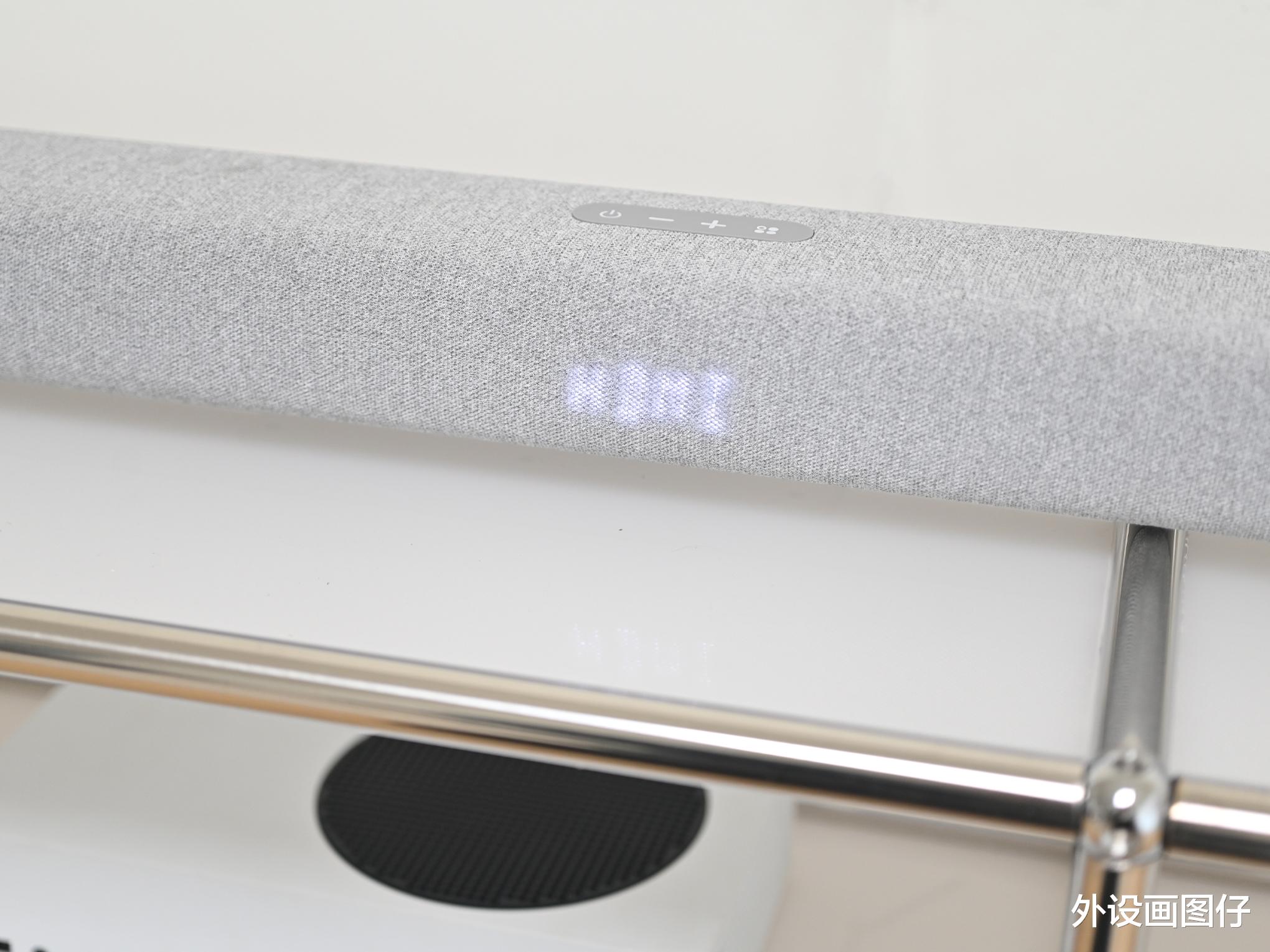 一个条形音响即可实现前左,中,前右声道和天空声道,摆放起来很简洁。(R:60W,L:60W,C:60W,天空声道45W×2)