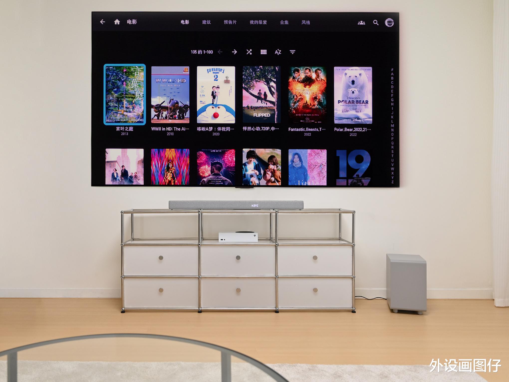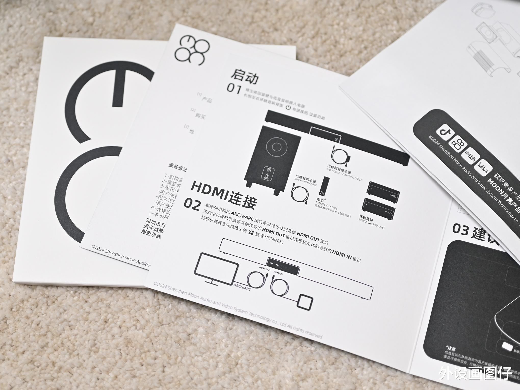 因此为了获得全景声效果,还是要另购一个物理多声道的音响设备进行补充,其中尤其推荐5.1声道的产品,性价比较高。如果根据杜比的标准,5.1会有前左,中,前右,后左,后右以及低音炮等多个喇叭,摆放起来一点也不好看。追求客厅的简洁,我会选择5.1回音壁作为替代,而国货新品牌MOON的QUINTET月亮五重奏很符合我需求。