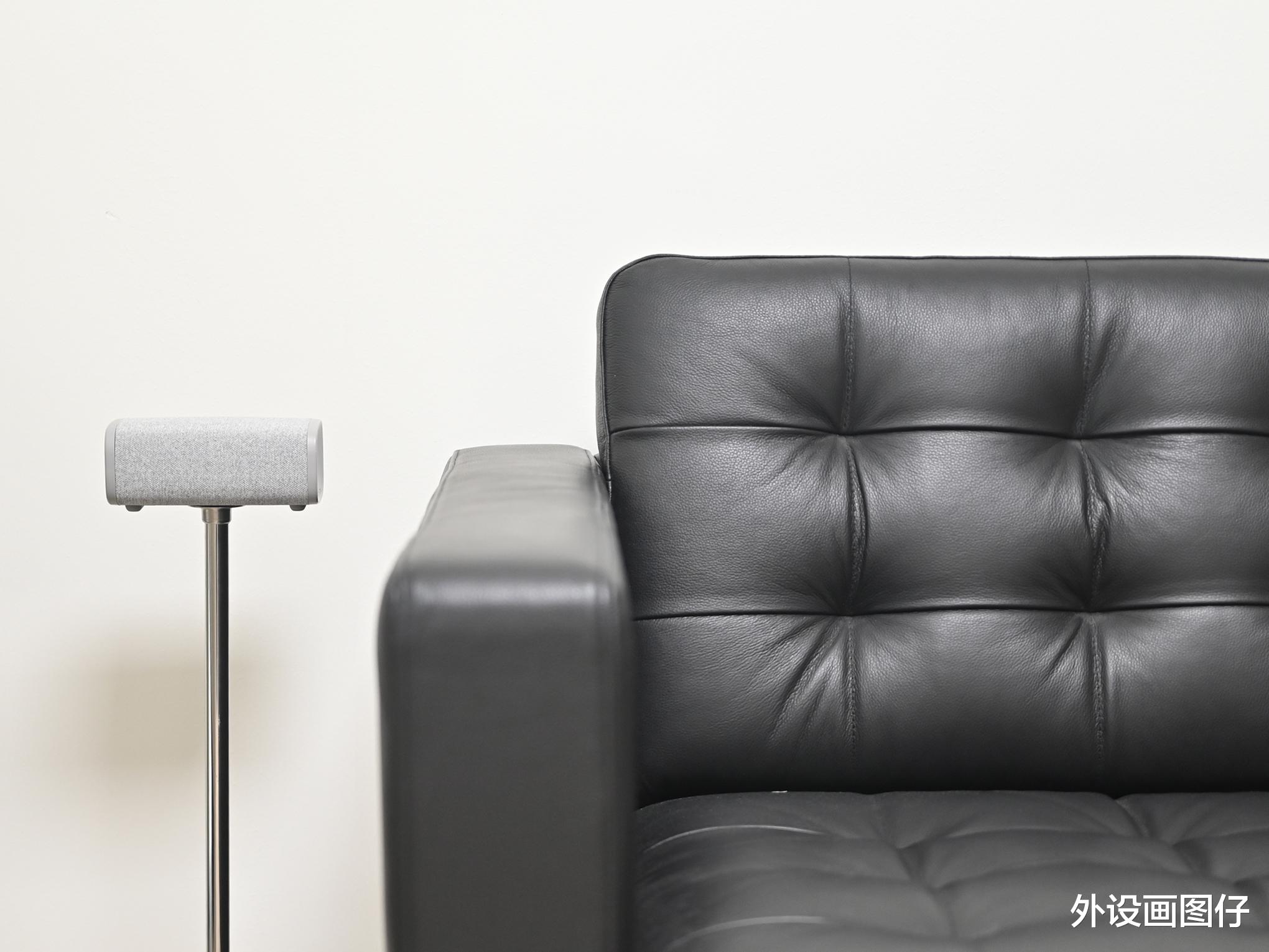 月岩灰配色的声学织物面料外壳很有质感,也很百搭,尤其是和现在流行的奶油风或者原木风非常搭配,我家这种偏现代主义的家装风格也很适宜。