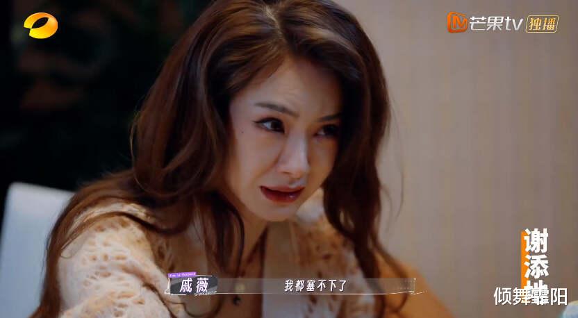 吃饭时,戚薇发现自己包里都是巧克力时,忍俊不禁的冲着镜头感叹:我包里都塞不下了。