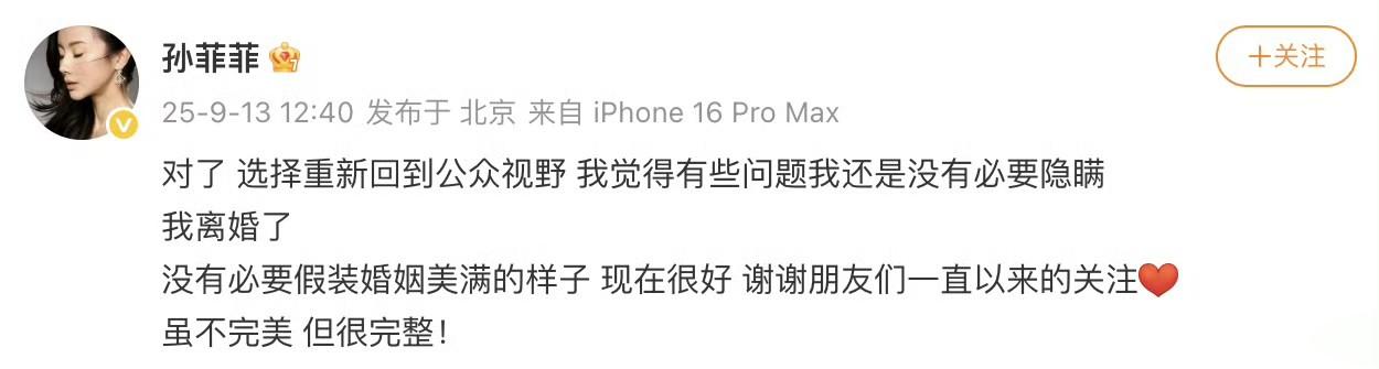 重建自我:孙菲菲明确表示"不会再婚",未来恋爱将理性考察尊重与性格契合度;
