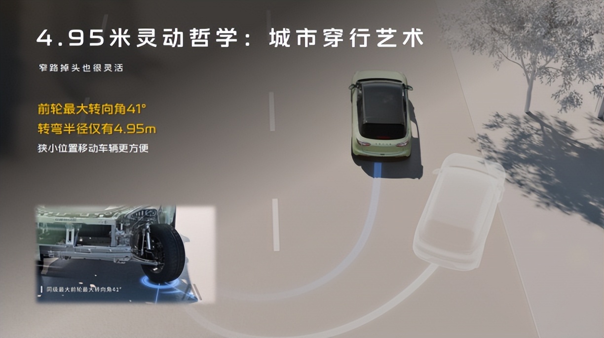 底盘系统的精心调校同样令人印象深刻。全系标配的"后驱+多连杆独悬"组合,在A0级纯电小车中堪称独树一帜。后驱布局实现了接近50:50的前后轴荷比,配合4.95米的转弯半径,即便在狭窄巷道也能灵活转向。经过中德团队联合调校的多连杆独立悬架,有效过滤了80%以上的路面颠簸,显著提升了乘坐舒适性。特别值得一提的是,底盘还针对中国路况进行了1.25Hz心跳拟合技术匹配,确保在各种路面条件下都能保持93.9%的横摆线性度,车身姿态始终稳健。
