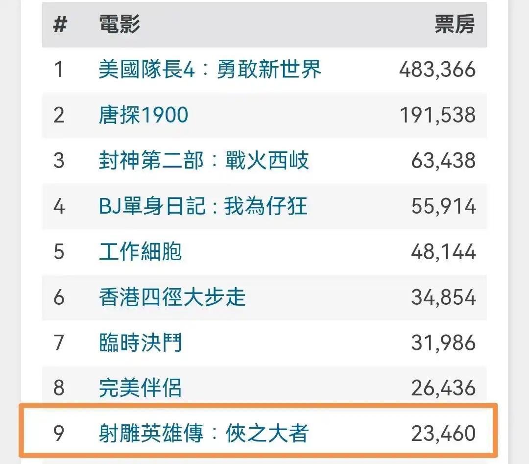 这部新射雕在内地市场的预售数据本来还挺亮眼的,一下子就冲到了3.5亿,在中国电影预售历史上排第六名,当时很多人都以为这片子能爆,结果第二天就凉了。