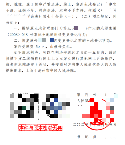 2023年12月,沧州市运河区法院作出一审行政判决,以登记行为事实不清、证据不足、程序违法为由,撤销了该土地使用权变更登记,并判决恢复原登记状态。彭某金与沧州市自然资源和规划部门均不服,提起上诉。